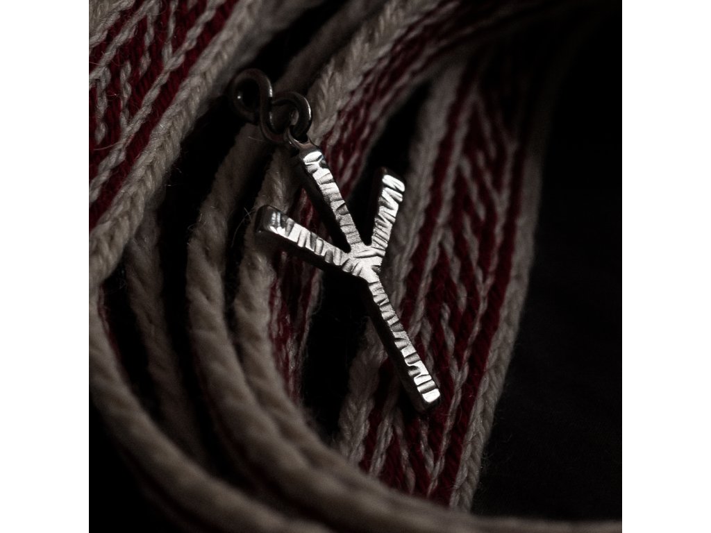 Starogermánská runa Algiz je ručně kovaná, broušená, leštěná a následně kartáčovaná do jemného matného povrchu. Vyrobena je z titanu Gr5, materiálu, který toho snese hodně – od agresivního potu po slanou mořskou vodu. Je lehký a naprosto vhodný pro alergiky. Ideální pro outfit moderního vikinga, ale i motorkáře sedlajícího nablýskaného oře od Harley Davidson.